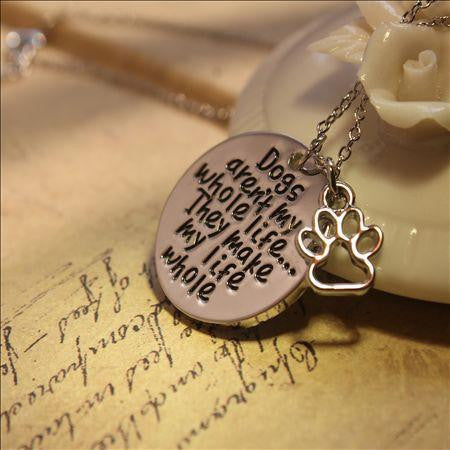 Attention dog lovers! You might be familiar with these sentiments engraved on this chain specially made for you: "Dogs aren't my whole life... They make my life whole". Let the rest of our fellow dog lovers know just how much you appreciate their loyalty and friendship. We owe it to them - Don't we?
