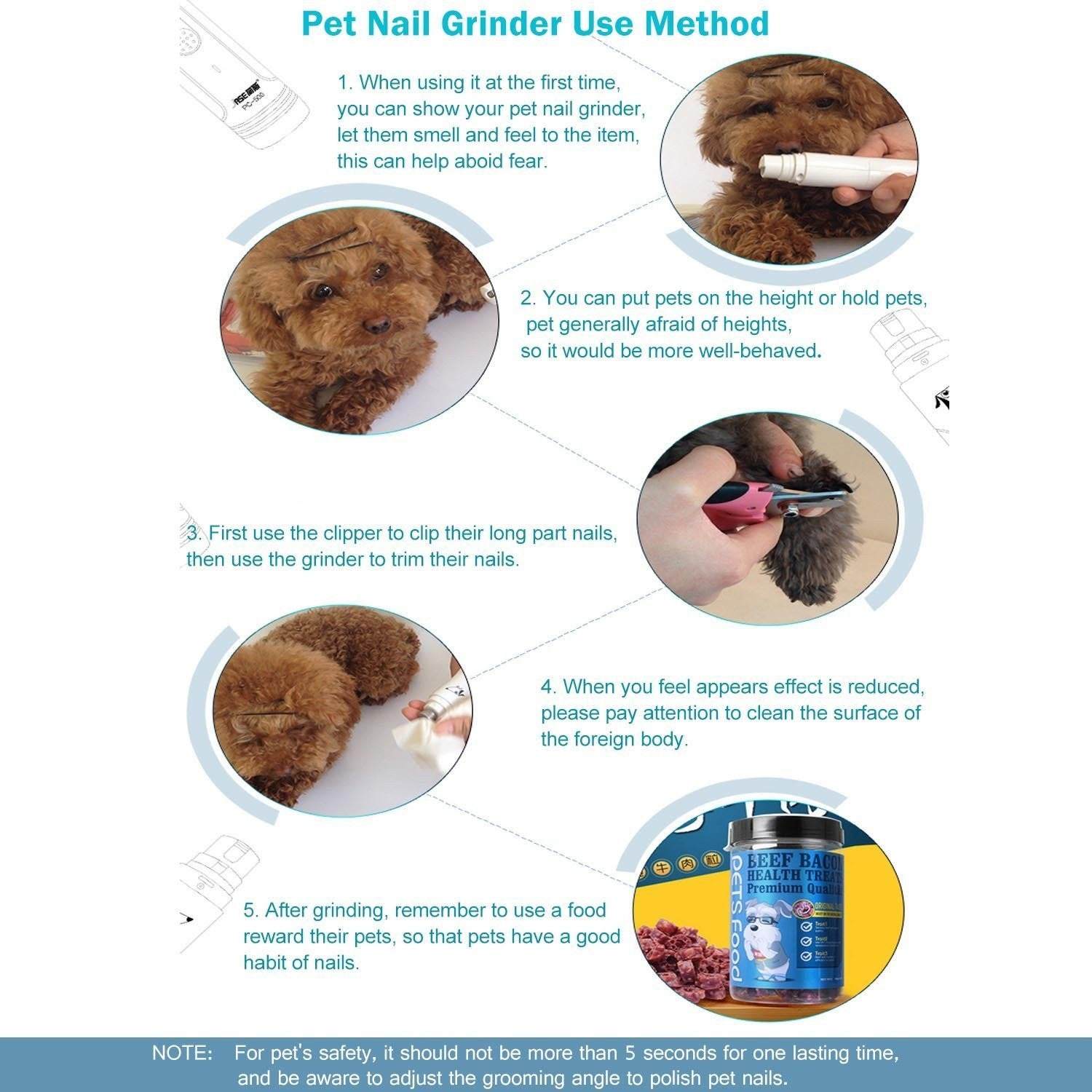 Do not grind the nails for more than 5 seconds at once, use some intervals between grinding to keep it safe for your pet.